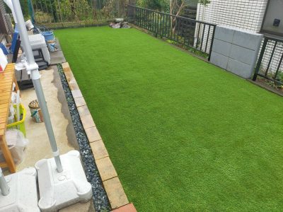 お庭を人工芝にすれば、プール等で遊ぶ時に、
