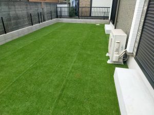 新築時に「外構業者が一緒に人工芝をやってくれて、安いから良かった!!」