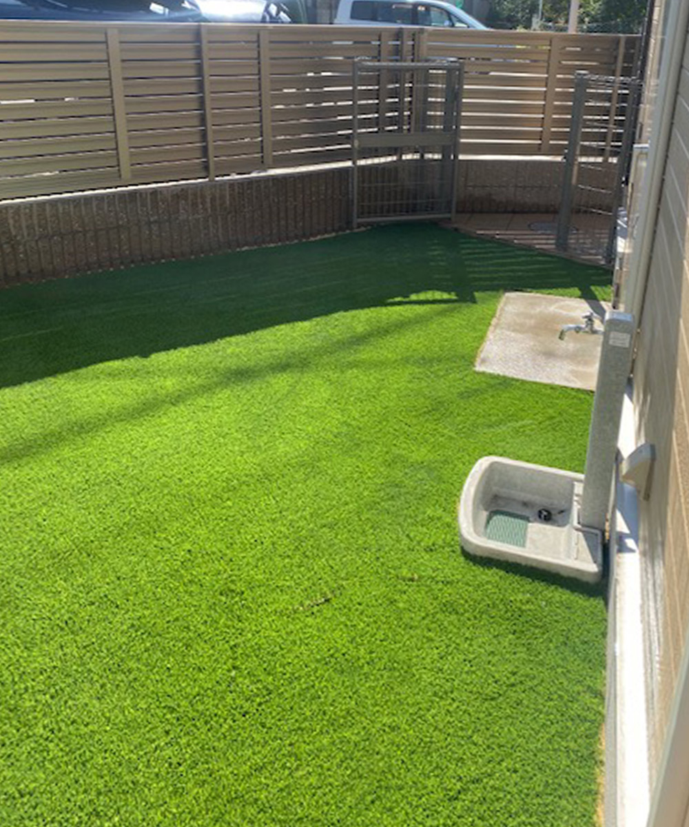 子供がよくベランダで遊びます。今までは靴を履いて遊んでいましたが、人工芝に変えた今は裸足でおもいっきり遊べます。 一階にも庭があり、天然芝がうまく生えず枯れてしまったので、ベランダと一緒に工事してもらいました。 見た目も良くスッキリです。ありがとうございました。